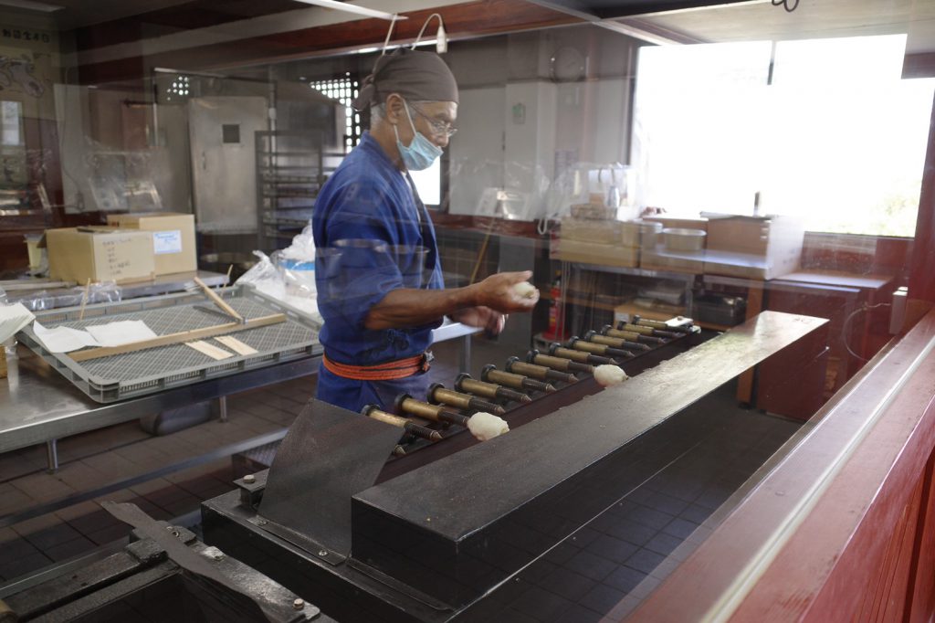 阿藻珍味では、創業時からの海産物の加工・販売だけでなく、鯛ちくわの手握り体験、手焼きせんべい体験、ふりかけ作り体験などができる「鯛匠の郷」という施設を鞆の浦で30年ほど前から運営しています。子どもから大人まで楽しめるこの体験施設ですが、オープンしたのには、阿藻珍味や海産物をより近くに感じてもらいたいという想いがあったそうです。時代が変化するにつれて、「魚離れ」が問題視されるようになり、それは水産加工食品を扱う阿藻珍味にも影響を受けてしまう課題となっていました。そこで、このような体験施設を通して、自分の手で「つくる」ことで、魚、そして阿藻珍味の商品をより身近に感じてもらおうと設置したそうです。実際、この施設を家族で訪れるだけでなく、学校の社会見学で訪れたことのある方が、大人になって阿藻珍味をまた利用してくれているというお話も教えていただきました。
